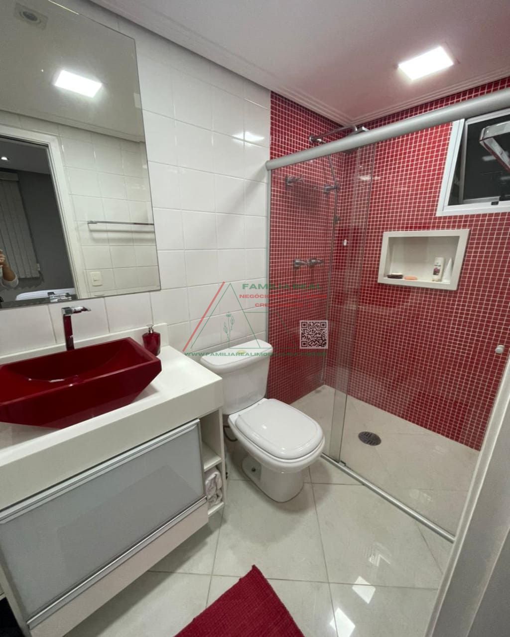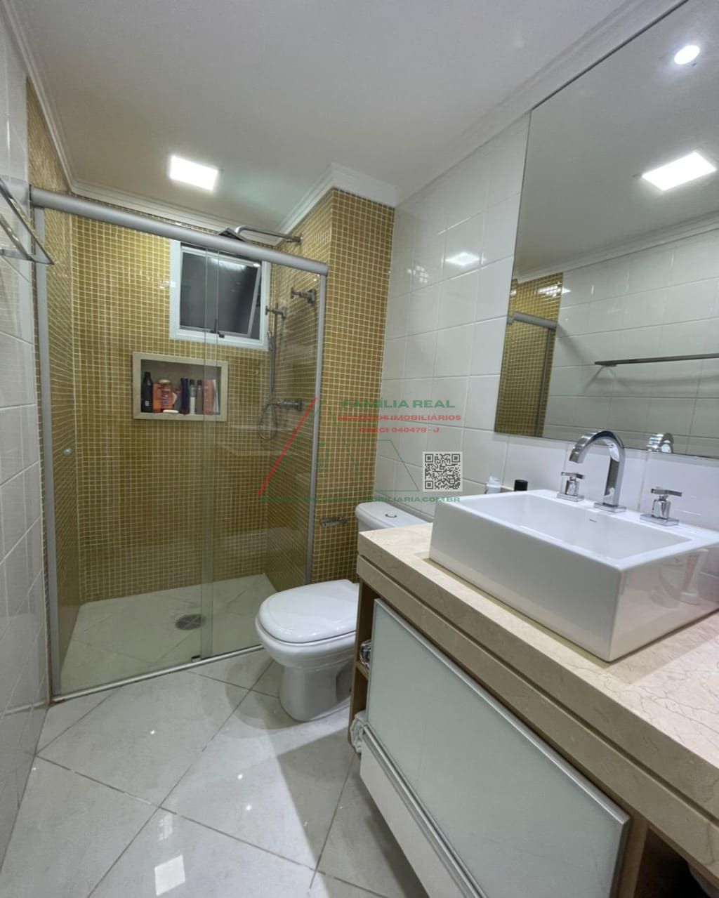 01 Banheiro Social e Suíte, com Gabinete e Box de vidro